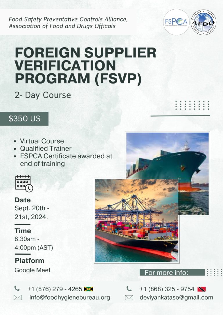 This course will help your facility meet FDA requirements set out under the FSMA’s Foreign Supplier Verification Program requirements and for importers of Food for Humans and Animals.